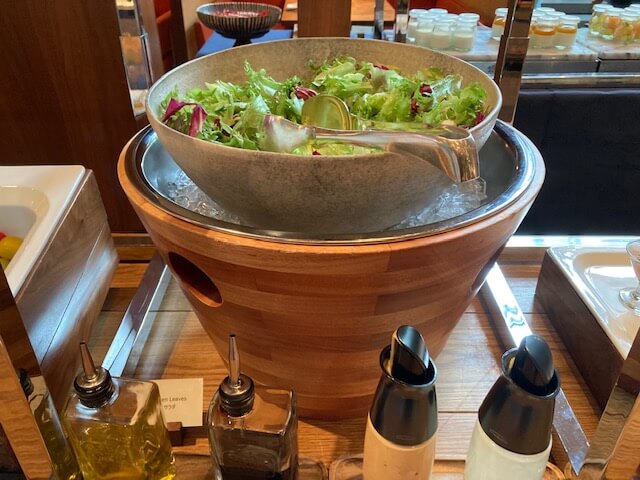 手前にドレッシングもあるので、お好みのものをかけるスタイルになっていますよ。