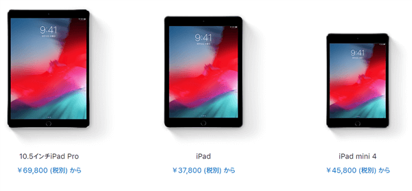iPadシリーズは上記3機種がラインナップ。