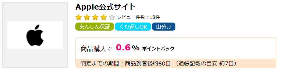 こちらはハピタス→Apple公式サイトと経由するだけでOKです!