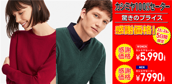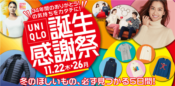 ユニクロ誕生感謝祭!11/22(木)~26(月)