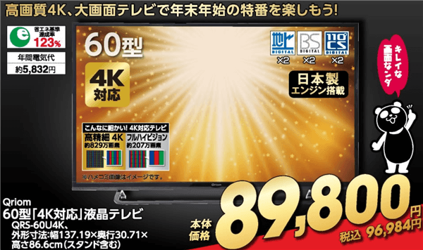 そして4Kテレビは60型でアンダー10万円ですよ(笑)テレビってこんなに安くなるものなんですね~~!