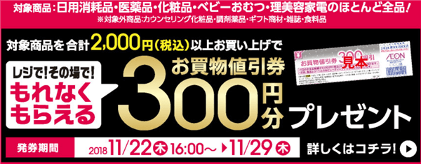 また、対象商品を2,000円(税込)以上購入でその場で300円分の値引券も貰えちゃいます!
