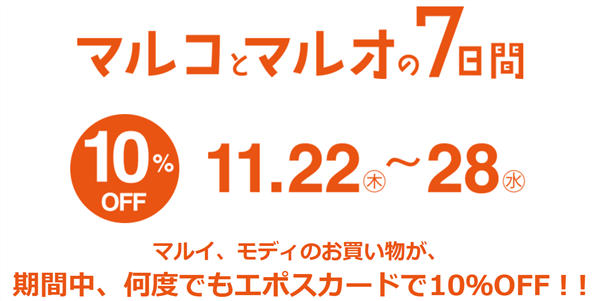 この期間は、マルイ、モディでエポスカード利用で10%OFFとなります。