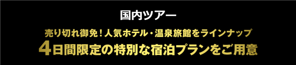 目玉商品として、対象ホテルが50%OFFや大特価セールがスタートです。