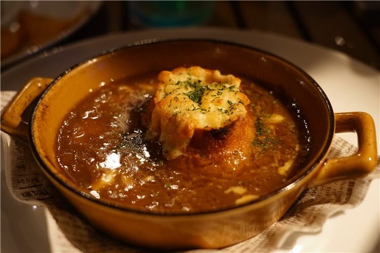 このオニオングラタンスープはとても濃厚でバゲットとの相性は抜群!!