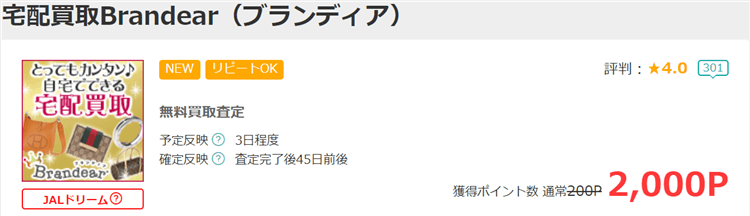 こちら、1,000円(税抜)以上の査定が出れば2,000Pが貰えます。