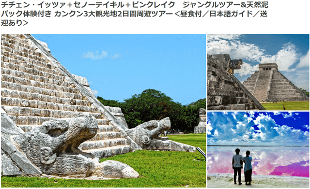 チチェンイッツァ、セノーテ、ピンクレイク、ジャングル探索全てがセットになったプランが一番効率が良い。