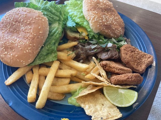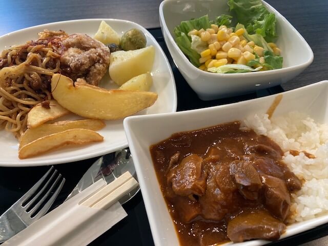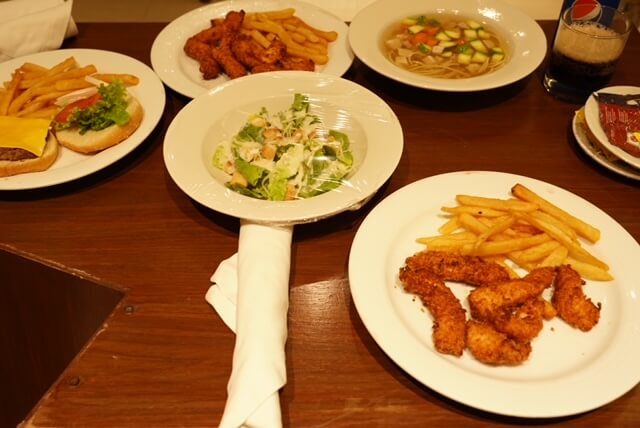 眠気も全くないのとお腹が空いていたので、ハンバーガーやパスタをオーダーして食べました!!