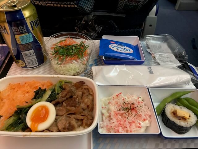 機内食を楽しんだり、お酒を飲みながら映画を見つつ寝落ちしました。