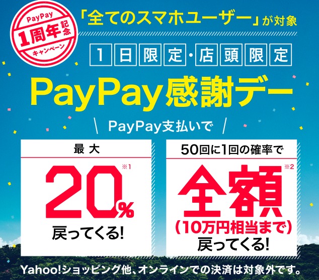 まずPayPayのおすすめポイントは、10月5日のPayPay感謝デー!