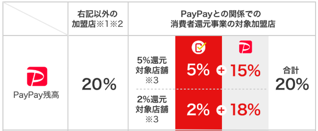 ちなみに、今回のキャンペーンではキャッシュレス対象店舗のキャッシュバック5%と合わせて20%となります。