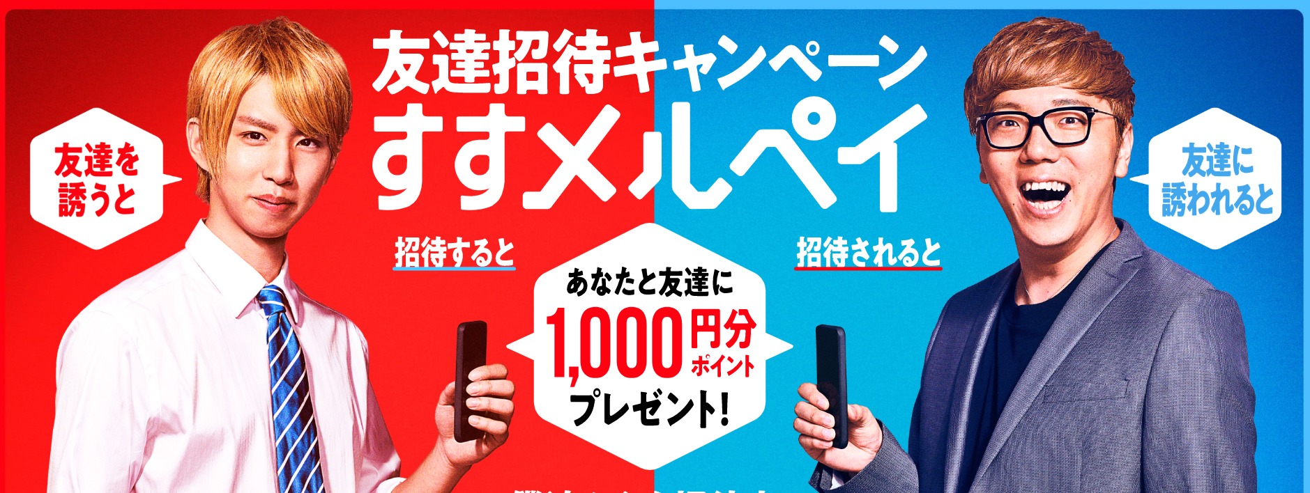 それは友達招待キャンペーンを利用してメルペイに登録すると、今なら1000円分のポイントがもらえるからです!