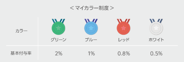 ポイント還元事業の最大5%に加えて、マイカラー制度で決められたカラー分の付与率でポイントバックを受けることができます。