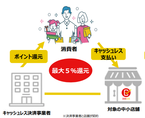 つまり、消費者・中小小売業者・キャッシュレス決済事業者がどこも損をしない仕組みの中、キャッシュレス決済の普及を目標とした政策というわけなんです。