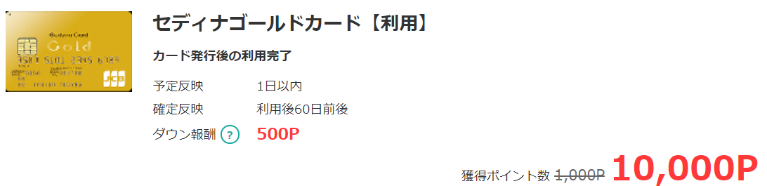 こちらのキャンペーンはセディナカード独自のキャンペーンとなりますので、モッピーのポイントとは別でもらえるポイントとなります。