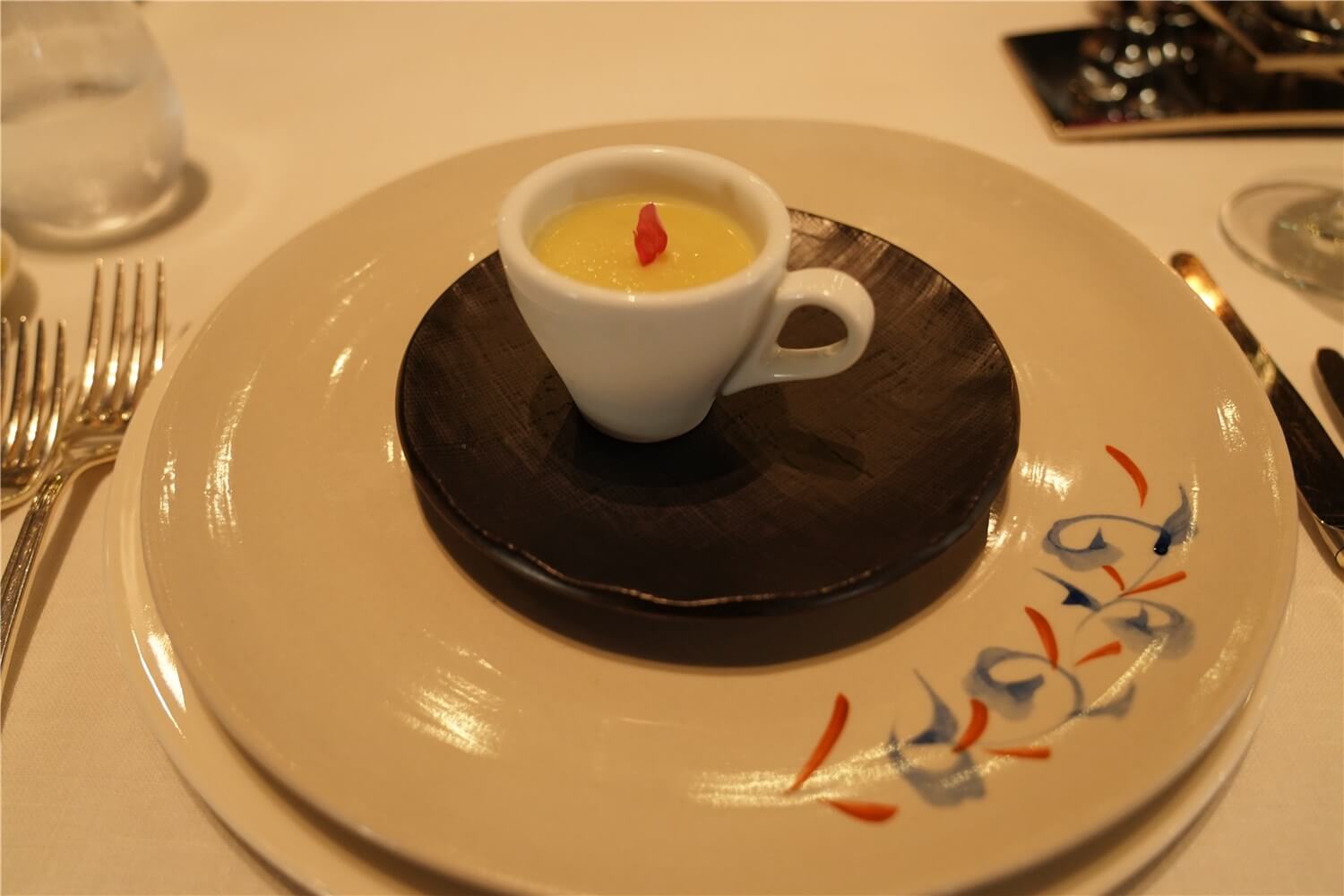 前菜前の冷静スープとNV Bellavista ~ベッラビスタ~で乾杯