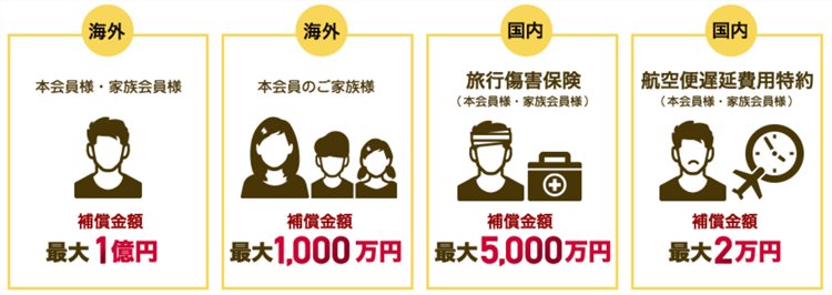セットになったビジネスやレジャーにも役立つ保険サービスが付帯します。