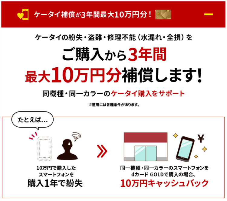 ※既にdカード GOLDをお持ちのお客さまが新しいdカード GOLDへお申込み・ご入会いただいた場合や、新デザインのdカード GOLDへお切替えいただいた場合は本特典の対象外です。