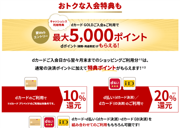 - dカード GOLD側キャンペーン:最大5,000円相当