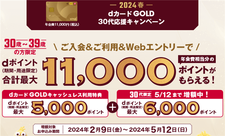 dカード GOLD入会&ご利用キャンペーンで最大11,000円相当貰える!