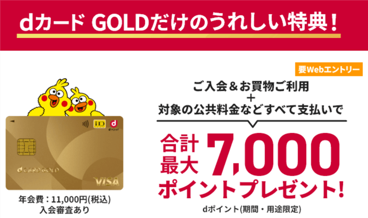 - dカード GOLD側キャンペーン:最大7,000円相当
