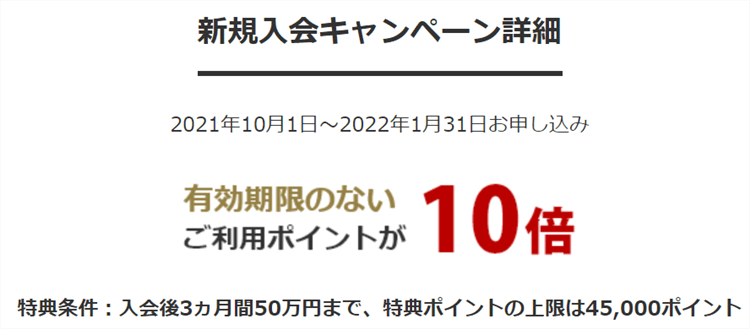 入会後3か月間は50万円の利用までポイント10倍!!