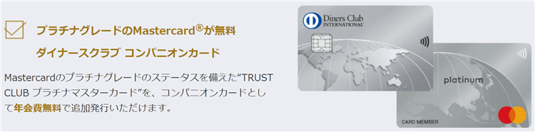 コンパニオンカードとしてMastercard®のプラチナグレードの“TRUST CLUB プラチナマスターカード”が無料で持てる!!