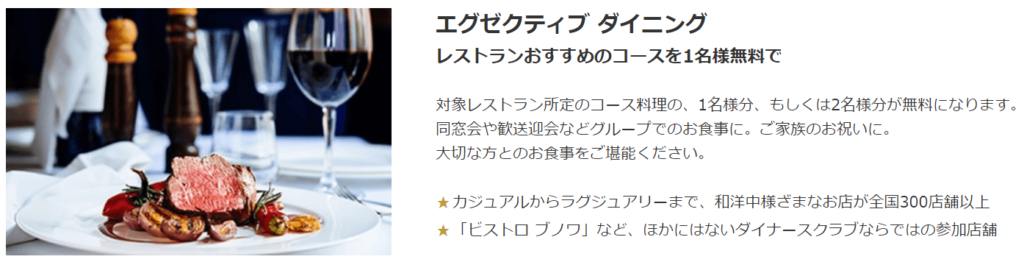 ダイナースクラブカードのメリット1:エグゼクティブ ダイニングは1名分無料!!