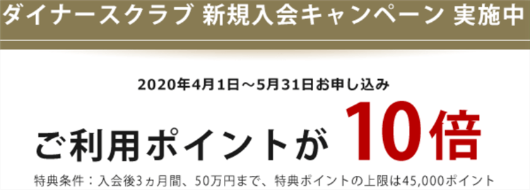 ダイナースクラブ新規入会キャンペーン!!でご利用ポイントが10倍!!!