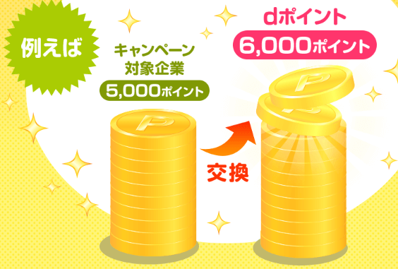 キャンペーン対象企業のポイントをdポイントに交換した場合、20%増量してdポイントに交換が出来るという恐るべしな錬金術キャンペーンとなります。