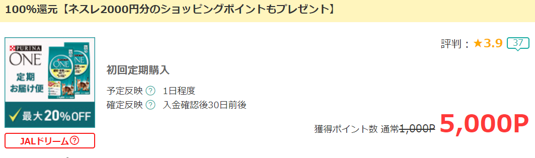 ほぼ100%還元で5,000PをGET