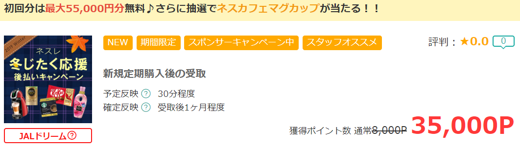 一番お得な案件!!最大55,000円分の商品が無料で35,000PをGET!