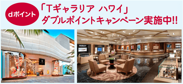 今回のdポイント利用スタートにおいて、「Tギャラリア ハワイ」でダブルポイントキャンペーンを開催中です。