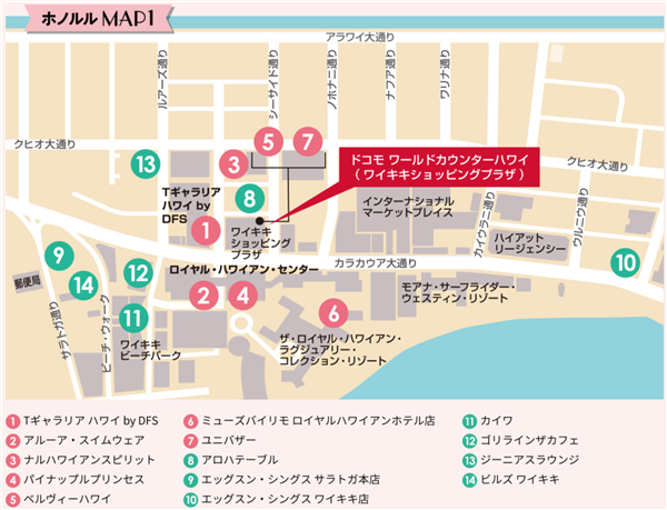 ホノルルの中心地では14店舗の利用が出来るようになっています。結構多いですね!!