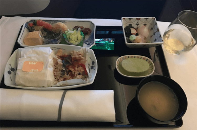 ビジネスクラスの場合、専用のアメニティや食事も豪華になる