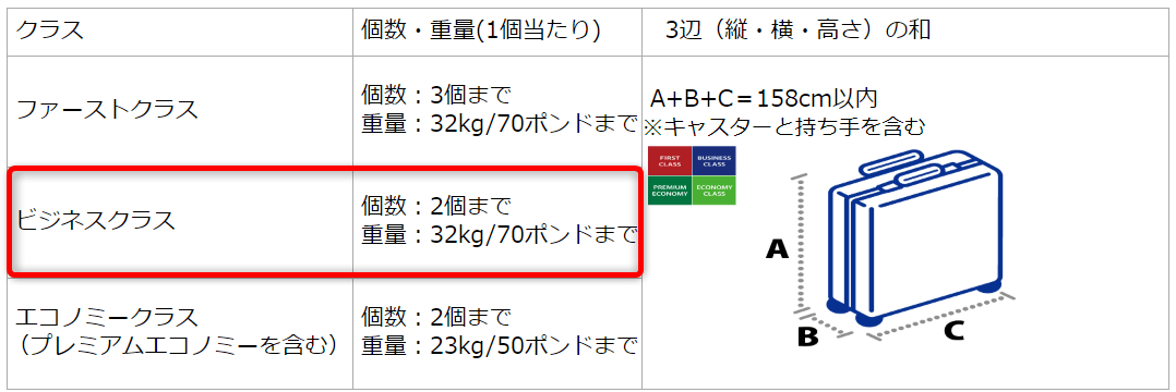 ところがビジネスクラスの場合は、32kgまでOKとなります。