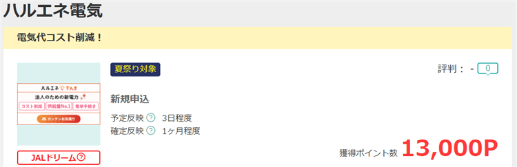システムの都合上、上記にて「獲得予定ポイント反映までの期間:対象外」と記載をしておりますが、正しくは「獲得予定ポイント反映までの期間:1~2日」にて反映されます。ポイントタウン経由でのお申込後、1~2日以降も獲得予定ポイントに未反映の場合は、お申込日から1週間以上経過した後に、ポイントタウンサポートまでお問合せください。※ポイントに関するお問い合わせは、ポイントタウンサポートまでお問い合わせください。