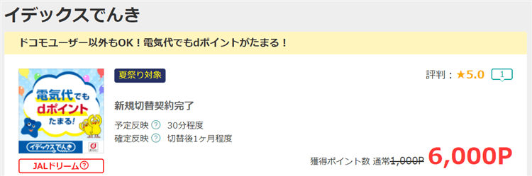 イデックスでんきの最大の特徴は「dポイントが貯まる」というのがメリットです。