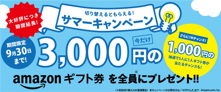 更に9月30日までなら切り替えキャンペーンで3,000円分のAmazonギフト券が貰えちゃいますよ!!