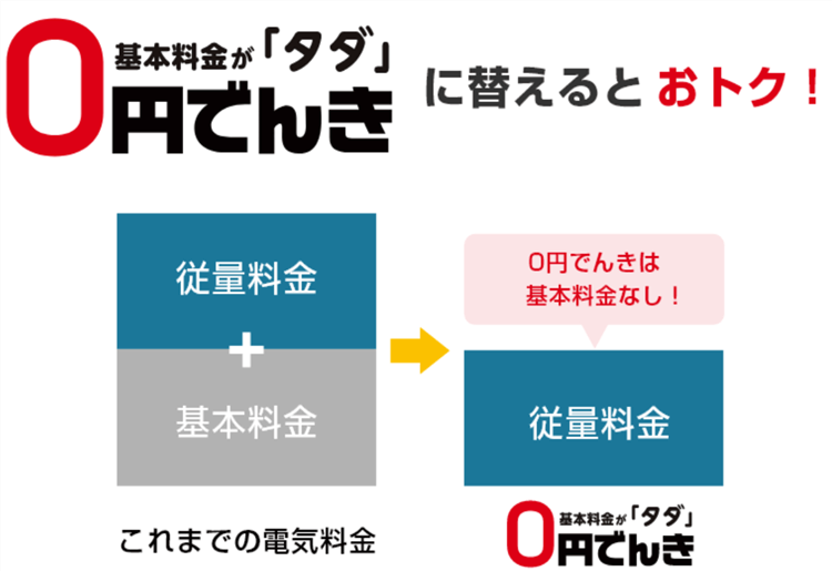 0円でんきの特徴は、基本料金を0円に設定している点です。