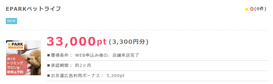 ポイントインカム!EPARKペットライフ利用で3,300円!!