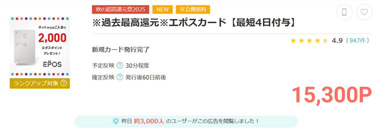 そして今回、エポスカードが超お得に発行できるチャンスが到来です。