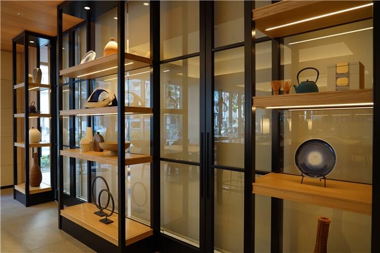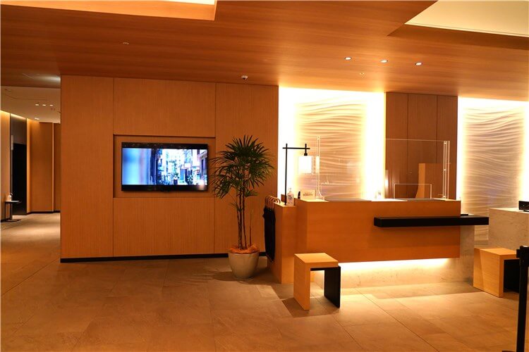 照明の雰囲気や、全体的にウッド調の温かみのあるロビーフロアとなっています。