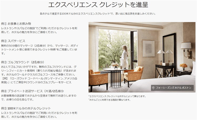 ファイン・ホテル・アンド・リゾート通称「FHR」ですが、アメックスプラチナ、アメックスビジネスプラチナ、センチュリオンを所持している会員向け限定サービスとなっています。