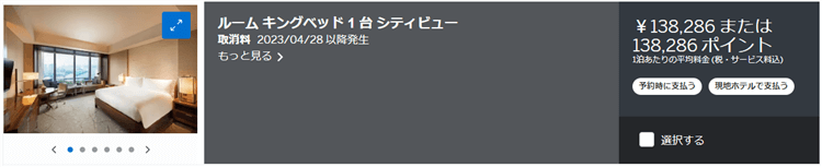 大袈裟に書いちゃうと3滞在(6泊)することでアメックスプラチナの年会費分の価値があるという事になります。