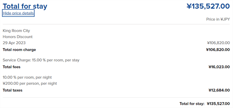 例えば、マリオットの上級会員であれば、マリオット系ホテルを利用する時は事前決済をせずにホテルプログラム併用でFHRを利用するのがいいですね。
