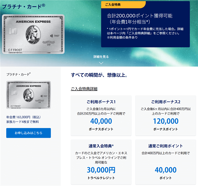 アメックスプラチナの新規入会キャンペーンは強烈!最大200,000ポイントが貰える!