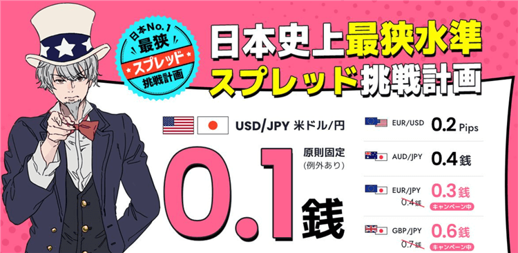 FXTFのドル円のスプレッドですが0.1銭となります。