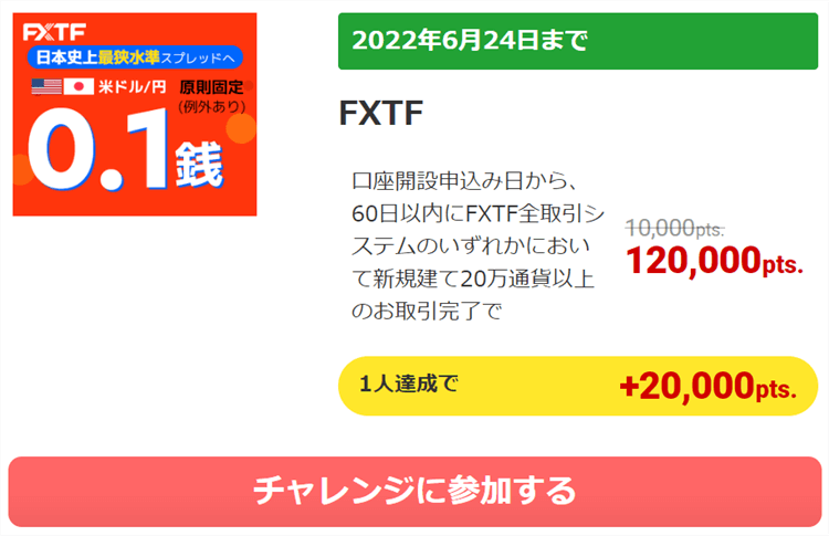 FXTFの利用で一撃120,000Pは激アツ!やり方と攻略方法!更に今なら追加20,000Pで合わせて14,000円分貰えるぞ!