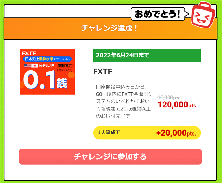 FXTFの新規口座開設と取引で一撃14,000PをGET!!